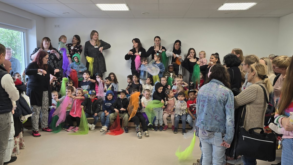 Die Feierlichkeit wurde mit einem Lied der Kinder eröffnet: "Alle Kinder haben Träume". Dieses Lied machte auf die vielen Sprachen aufmerksam, die in der Kita gesprochen werden. Aktuell werden Kinder aus 25 verschiedenen Sprachgruppen betreut. An der Puzzle-Wand können Eltern jederzeit sehen, welche Sprachen das Team spricht, was die Kommunikation und das interkulturelle Verständnis fördert.
